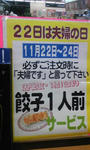 昨日11/22は「いい夫婦の日」とゆう事で 夫婦には餃子無料サービスやってました!!おしい~1日遅かった(笑)本日入籍予定です☆