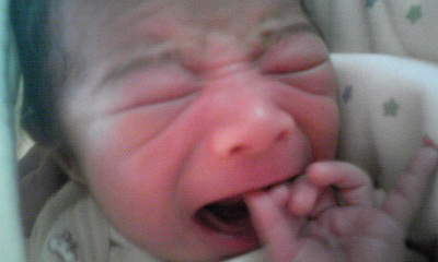 最初の頃は「エヘヘー エヘヘー」ってずっと小さくグズってるか、「んふれー!んふれー!」(ほんまにこう聞こえる;)って(>□<)←マジでこんな顔文字みたいな顔して泣くかの2パターンしかなかったのに、2日くらい前から泣き方のバリエーションが毎日毎日増えてきてます(笑)