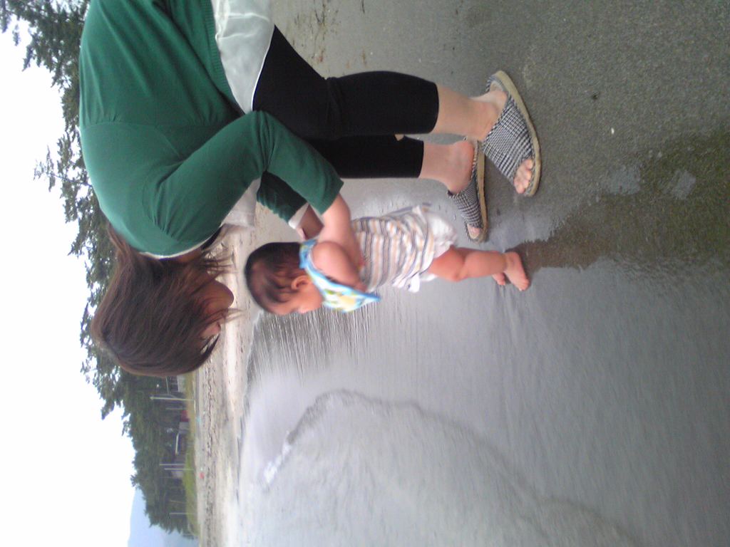 明日夢は海水に足が触れた瞬間冷たくてビックリして「あっあっぃぁー!」って悲鳴あげてましたが すぐ慣れたようで静かに波に見とれていました。(赤ちゃんの泣き声は文字で表現しにくい!(笑))