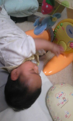 おっいま明日夢が笑いました(´・∀・`)口も開けて完全に笑顔ですね~しかも一瞬でなく何度も。あとは声出してくれたら完璧なんだけどな
