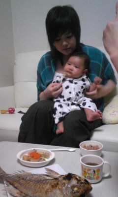 で 今月8日に100日祝いてゆうのやります。鯛とか用意して食べさせるフリするんですよ~お食い初めとか言うやつ…