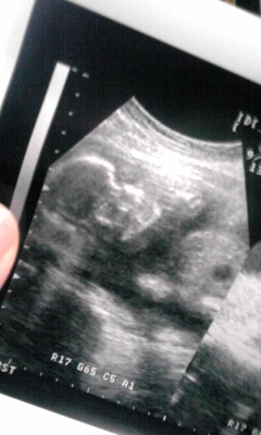 実は前回病院に行った時も1枚もらったんですけど、まだ全然形わかんなくて何か怖くて;;UP出来ずにいたんですよ。(うっかり「気持ち悪い」って言っちゃった時に弟に「赤ちゃん聞いとるからそんなことゆったらアカン」て怒られて反省したのもイイ思い出になりそうです(笑)