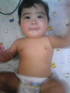 パパやママの真似もするようになりました。手を叩いたら明日夢も手をバタバタ!!まだ叩けてないけどまねしてる間はすっごい楽しそうに笑います☆それから、ママが高い声出したら同じように高い声出して対抗!気づいたら大声合戦 笑 近所迷惑なふたりです