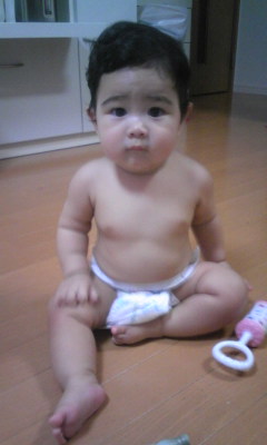 それに最近はつかまりだちから手を離して2,3秒は一人で立ちます!!すっごい面白いみたいですよー「どうだ!」って顔して調子に乗って大笑いwwやめられないみたいですよ~頑張ってるのはすばらしいことだけど夜中にやり始めたら1時間はやり続けるから大変~寝てくれあすむーー