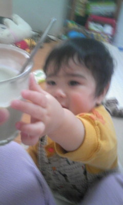 あすむくん青汁オレが大好きみたいです(^O^)うちにある青汁はキナコとか入ってて甘くて美味しいから赤ちゃんでも飲みやすい(*´ω`人)自分が飲もうと思って作ったのに、多い時はコップ半分取られちゃいます!